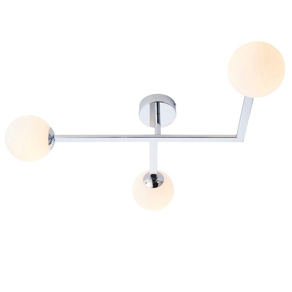 Polished Chrome Semi Flush Bathroom Ceiling Light & Opal Glass Shade - 3 Bulb