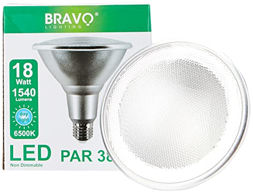 BRAVO LIGHTING Par38 LED Bulb, E27/Es Cap, 18 Watts 1540 Lumens, Day Light (6500K), Waterproof (IP65), Ideal for Bathroom, Living Room, Bedroom, Kitchen, Hallway, Hotel, B&B