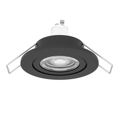 Eglo LED Recessed Spotlight Barranco, Bathroom Ceiling Spot, Black Plastic Ceiling Light, Neutral White Bathroom Lamp, Including GU10 Bulb, IP44