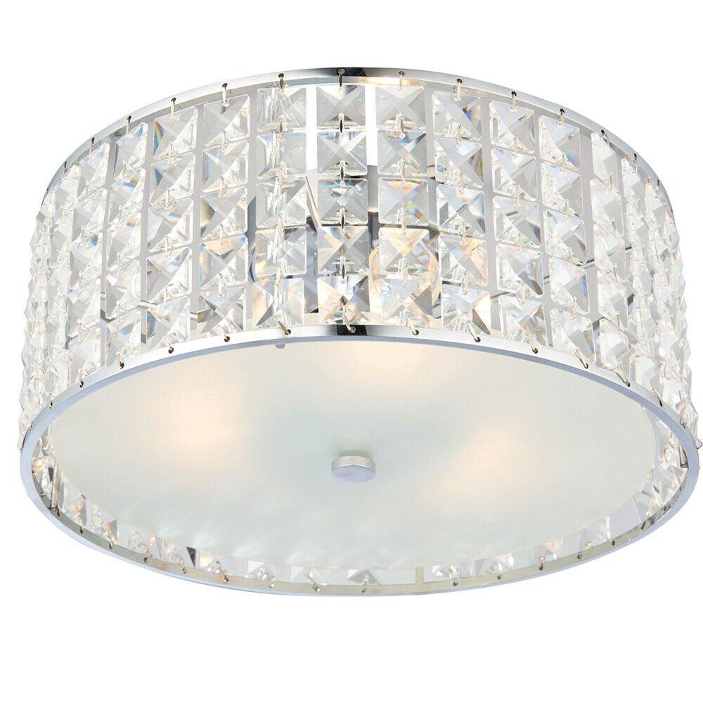 Flush Bathroom Ceiling Light Luxury Crystal Chrome IP44 Round Lamp Bulb Holder