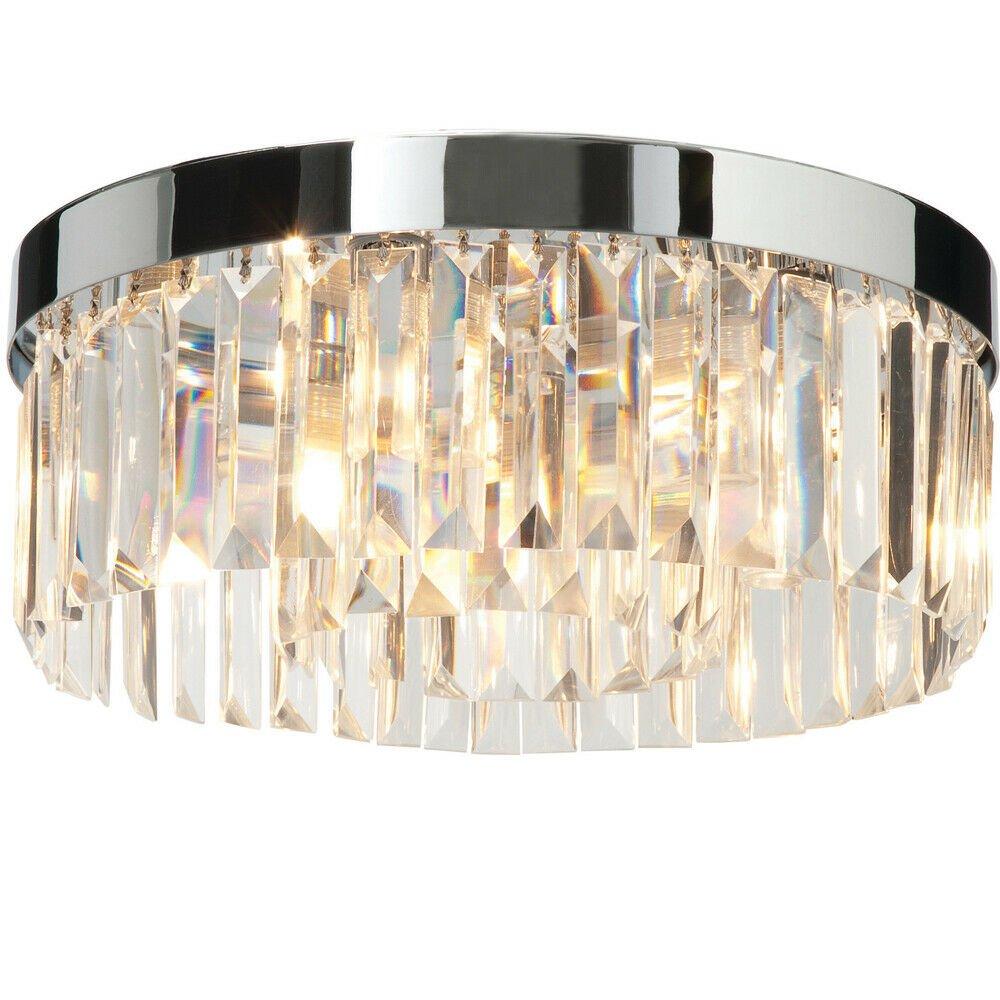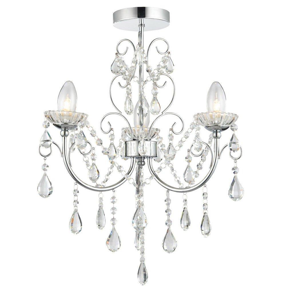 Flush Bathroom Ceiling Light IP44 Chrome & Crystal 3 Lamp Bulb Hanging Pendant