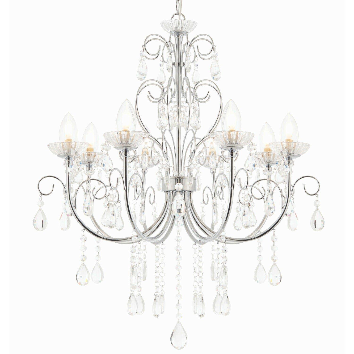 Bathroom Ceiling Pendant Light Chrome & Crystal IP44 8 Bulb Hanging Lamp Rose