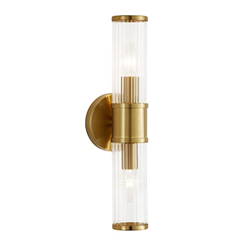 Epinl Vintage Wall Sconces Lighting, 2-Lights Wall Sconce Rustic Wall Light Fixture Indoor Gold Wall Lamp with Glass Lampshade and E14 Bulb Socket , Wall-Mounted Lamps for Bathroom Bedside Porch.