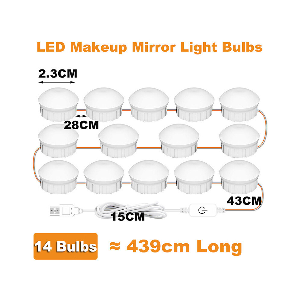 (14 Bulbs 439cm Long) LED Makeup Mirror Light Bulbs USB Hollywood Vanity Make Up Mirror Lights Bathroom Dressing Table Lighting Dimmable LED Wall Lamp