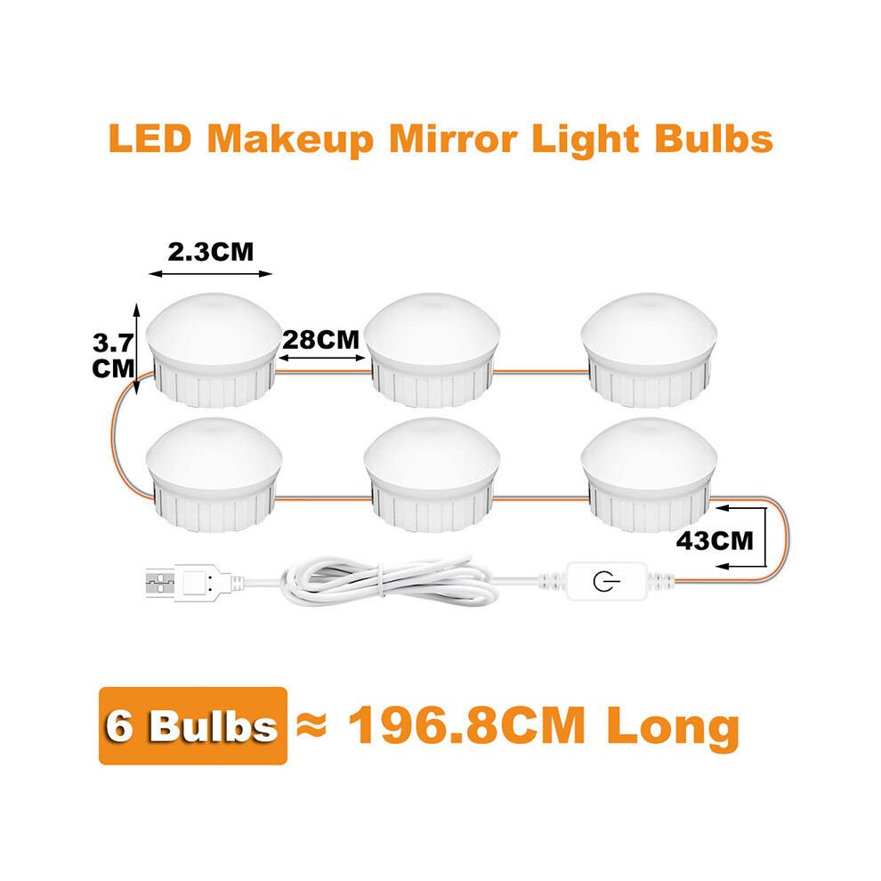 (6 Bulbs 196cm Long) LED Makeup Mirror Light Bulbs USB Hollywood Vanity Make Up Mirror Lights Bathroom Dressing Table Lighting Dimmable LED Wall Lamp