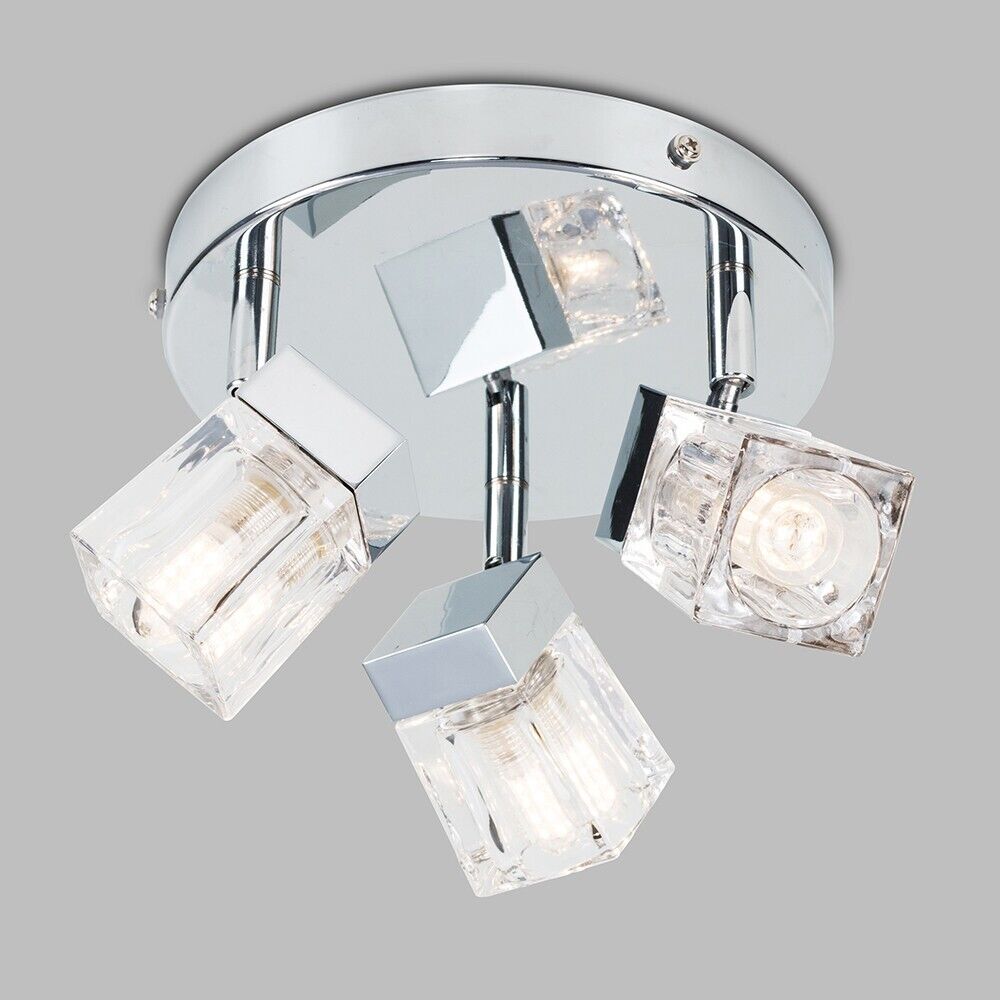 Ice Cube 3 Way Ceiling Light Fitting Bathroom Lighting IP44 LED Cool White Bulbs
