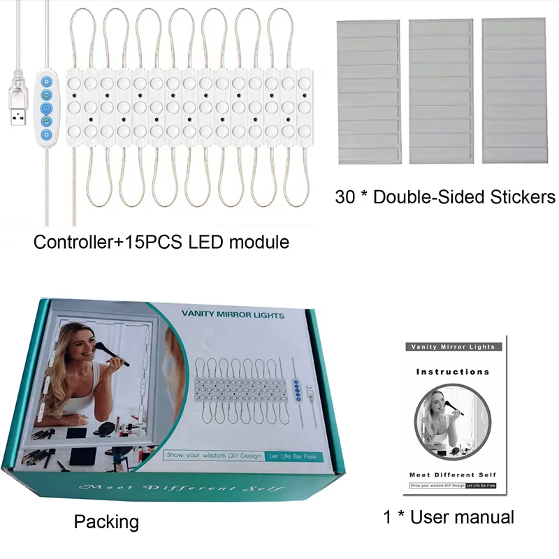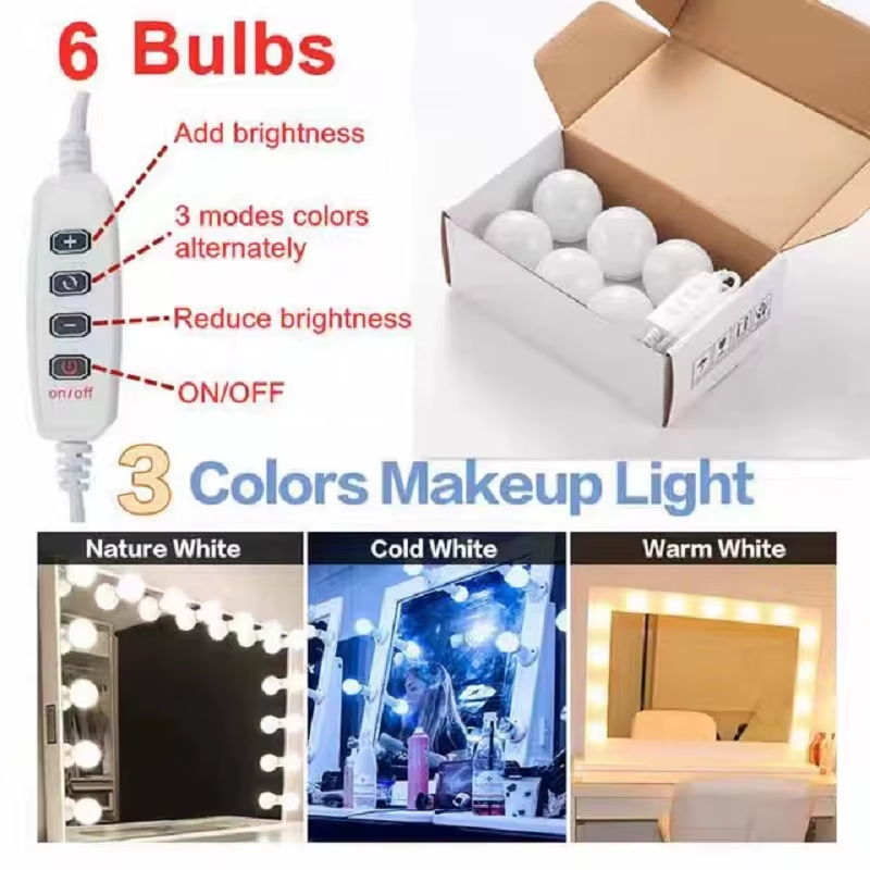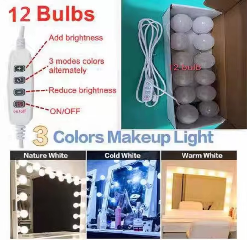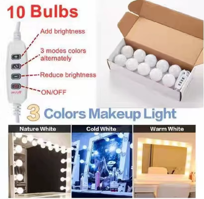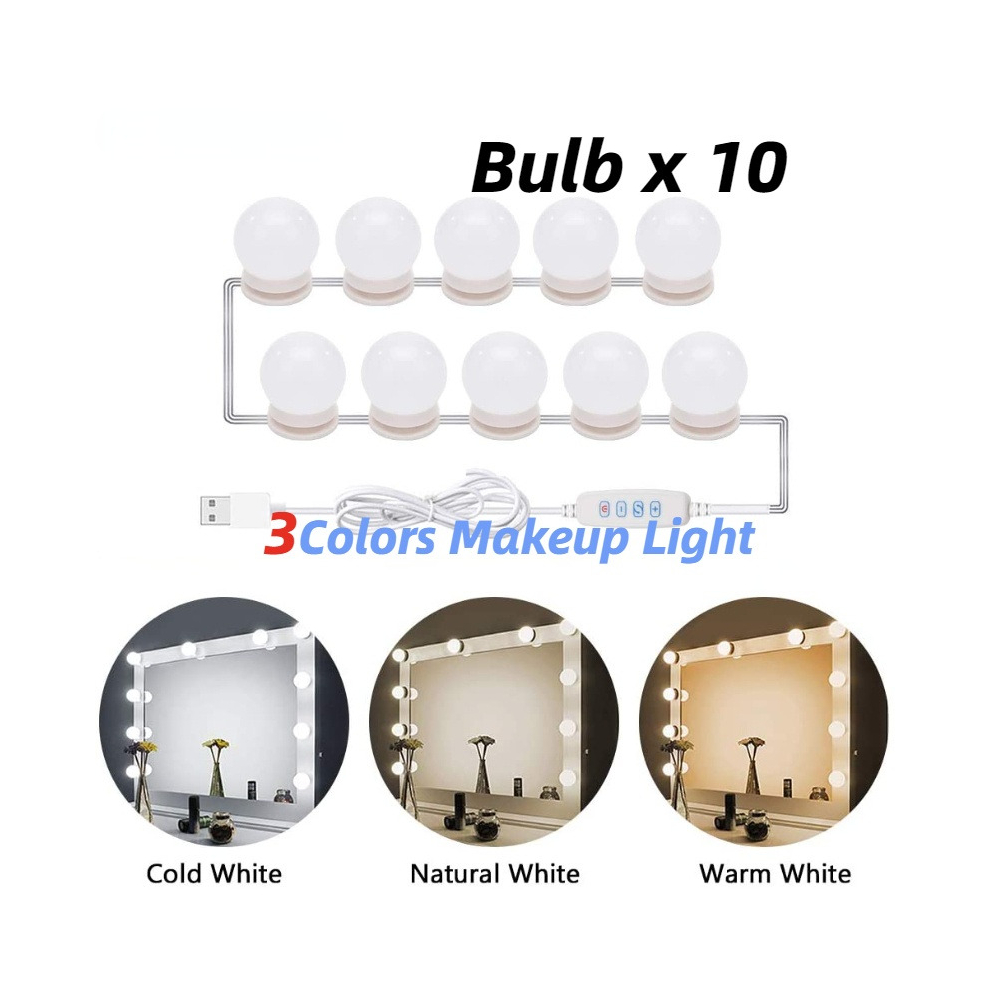 (3 Colors 10 Bulbs, Dimmable) LED Light Makeup Mirror Bulbs Vanity Lights USB 12V Bathroom Dressing Table Lighting Dimmable LED Vanity Light For Mirro