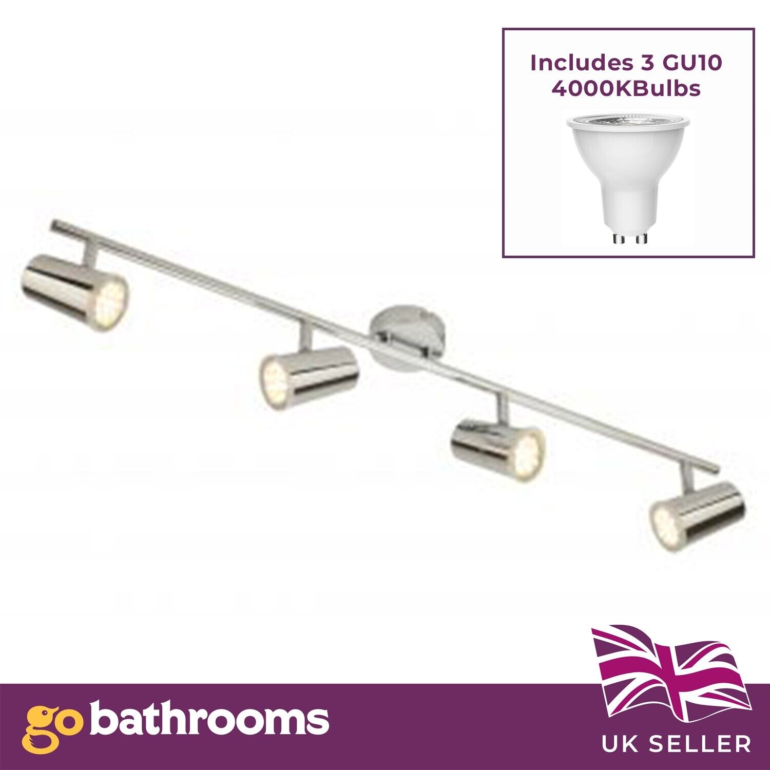 Chrome Decorative Bathroom Light | 4 Spotlight Ceiling Bar & Bulbs Included