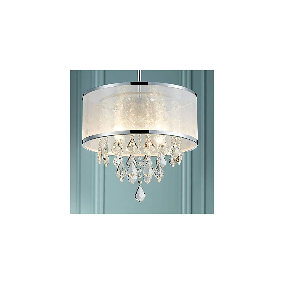 BESTIER Modern Pendant Crystal Drum Chandelier Lighting Ceiling Light Fixture Lamp Dining Room Bathroom Bedroom Livingroom 4 E14 Bulbs Required D40cm
