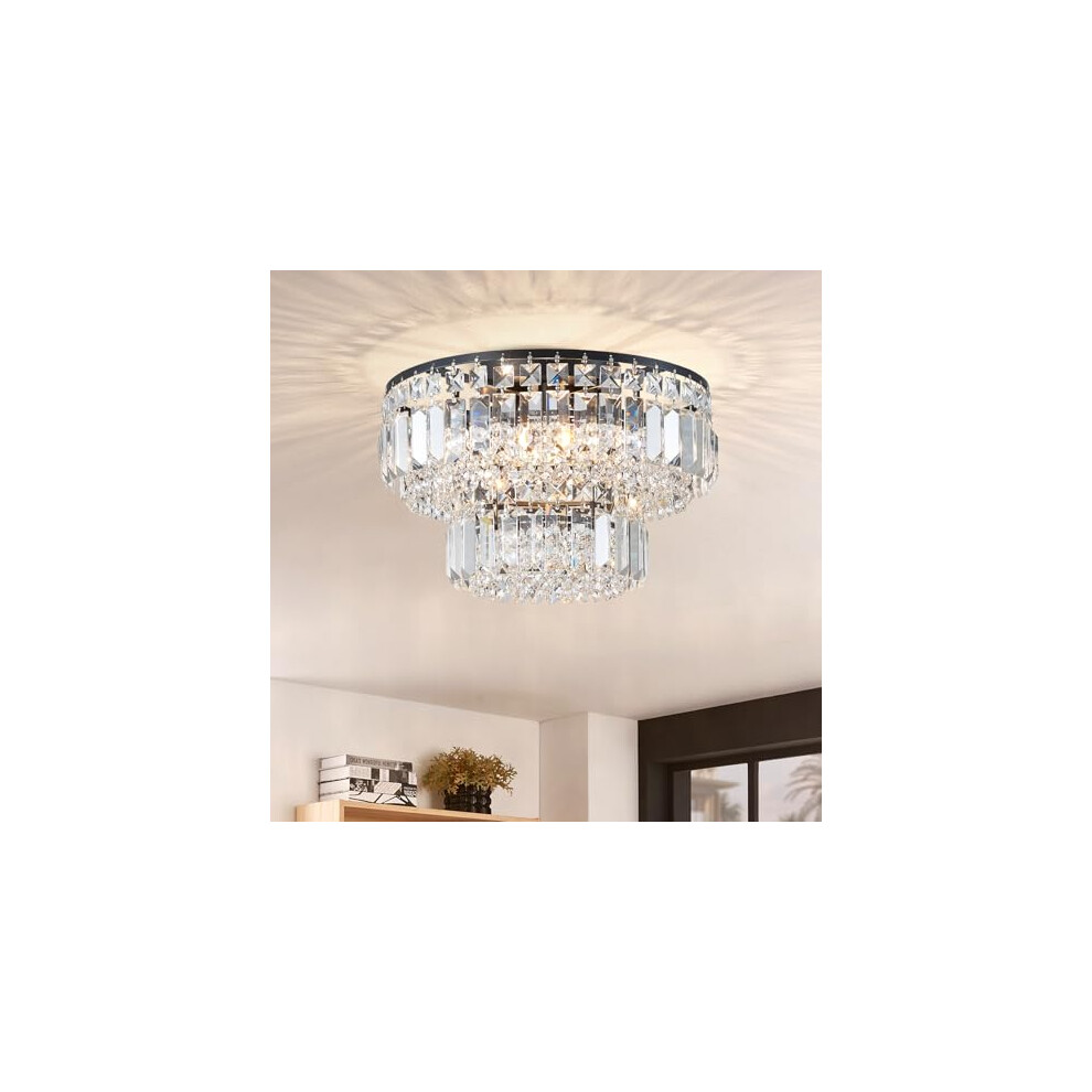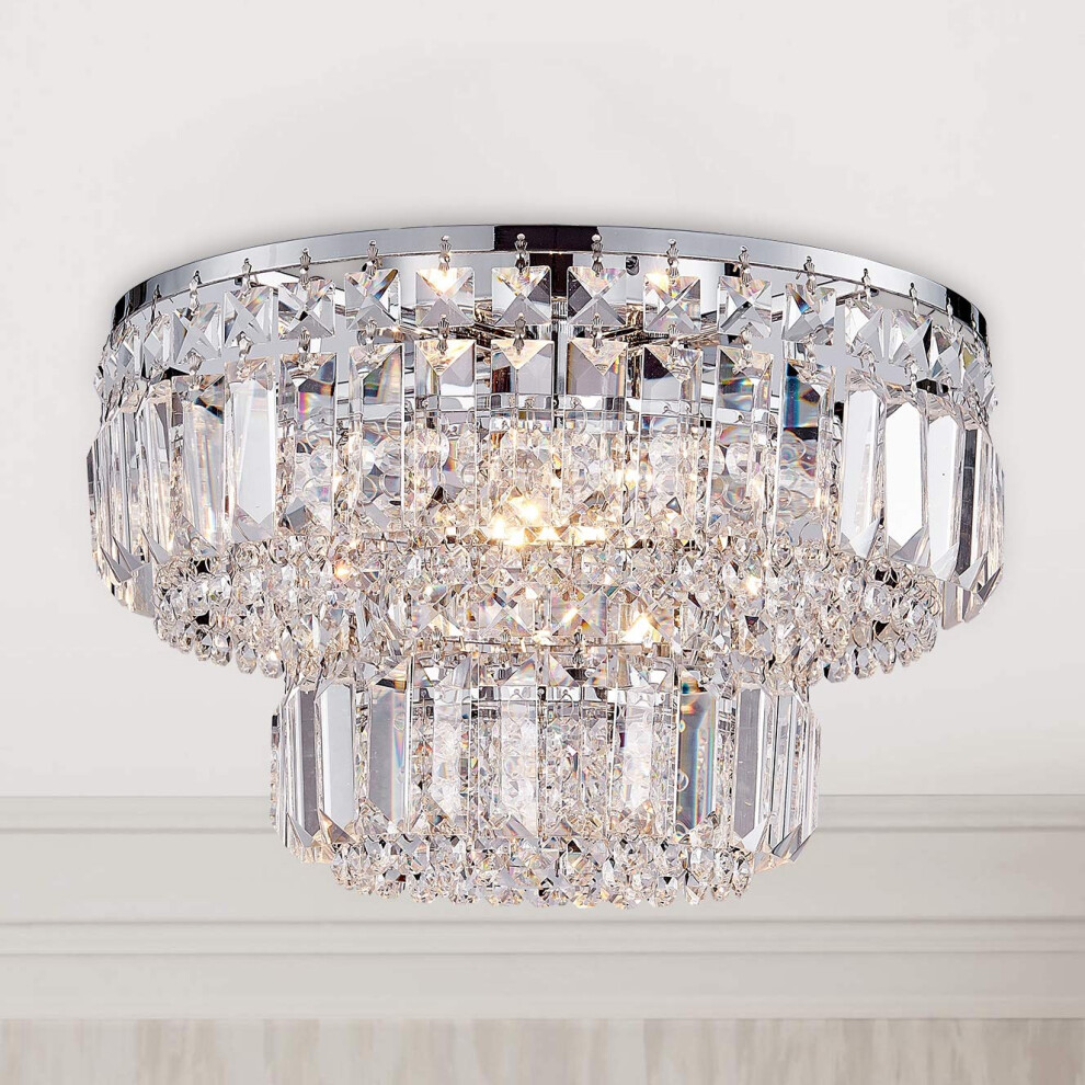 BESTIER Modern Chrome Crystal Flush Mount Chandelier Lighting LED Ceiling Light Fixture Lamp for Dining Room Bathroom Bedroom Livingroom 4 G9 Bulbs