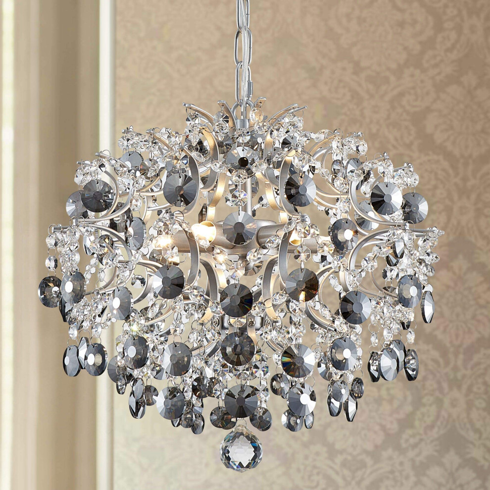 BESTIER Silver Modern Pendant Chandelier Crystal Raindrop Lighting Ceiling Light Fixture Lamp for Dining Room Bathroom Bedroom Livingroom 3 E14 Bulbs