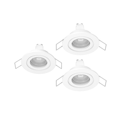 Eglo Set of 3 LED recessed spotlights Barranco, Ceiling spot for Bathroom, Light fixtures Made of White Plastic, Warm Bathroom lamp, Including GU10 Bulbs, IP44