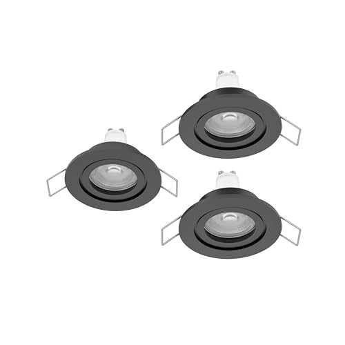 Eglo Set of 3 LED recessed spotlights Barranco, Ceiling spot for Bathroom, Light Fixture Made of Black Plastic, Warm White Bathroom lamp, Including GU10 Bulbs, IP44