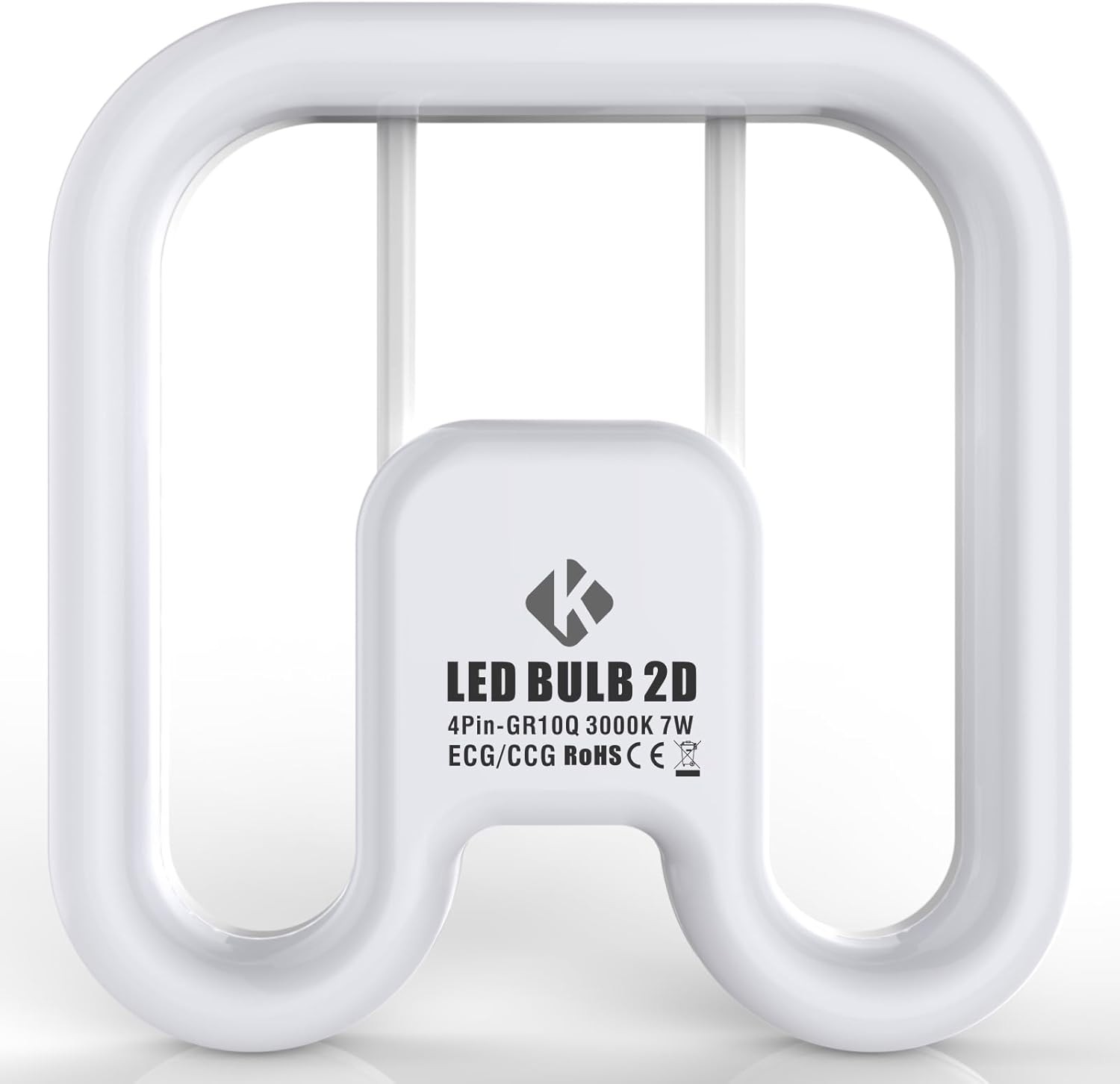 KENIU GR10q 4 Pin 2D Plug & Play LED Bathroom Light Bulbs 3000K (Warm White) 950lm,7w Replacement 16w CFL, Works with ECG/CCG ballasts,Instant Start,