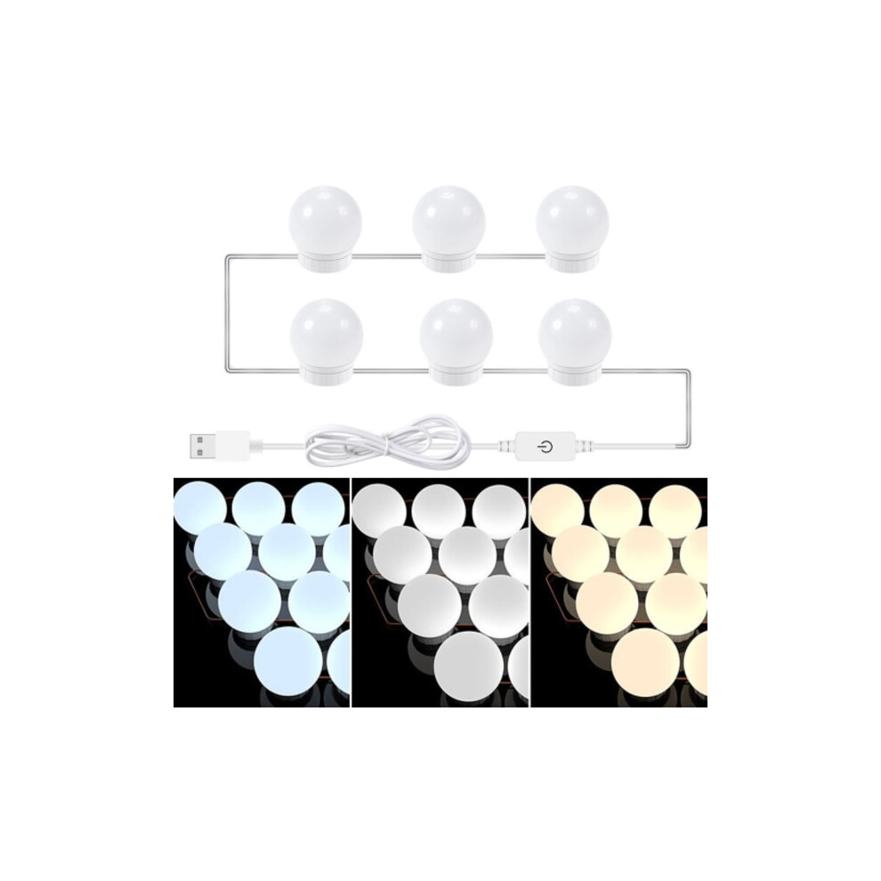 3-color temperature mirror front light USB single bathroom makeup light bulbs, power source: 6 LEDs
