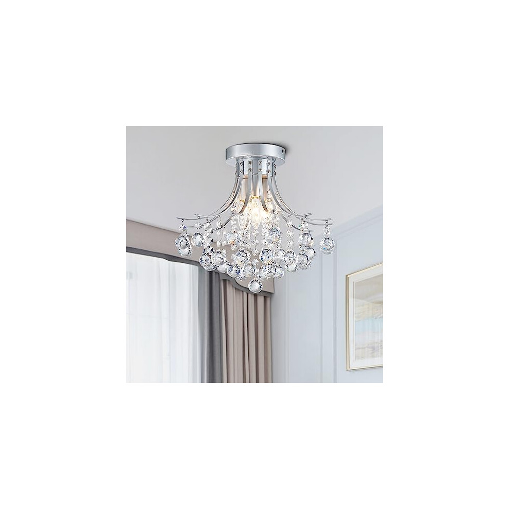 BESTIER Modern Silver Crystal Semi-Flush Mount Chandelier Lighting Ceiling Light Fixture Lamp for Diningroom Bathroom Bedroom Livingroom 3 E14 Bulbs