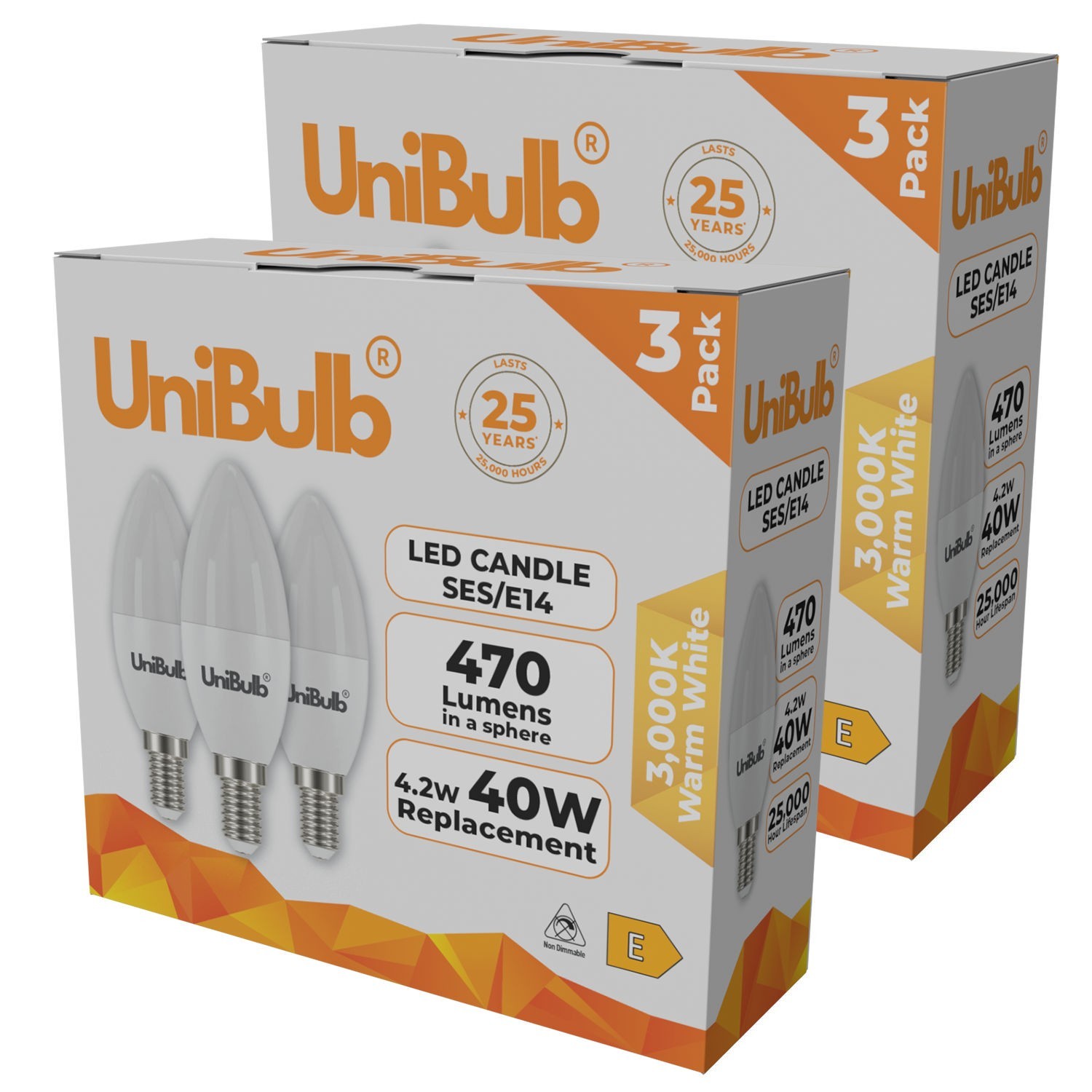 6x UniBulb E14 4.2W Candle Light Bulbs for Bathroom Wall Lights Replaces 40W