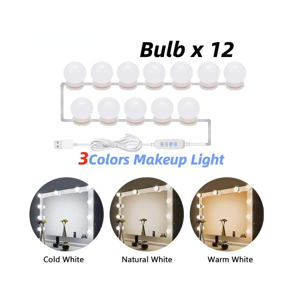 (3 Colors 12 Bulbs, Dimmable) LED Light Makeup Mirror Bulbs Vanity Lights USB 12V Bathroom Dressing Table Lighting Dimmable LED Vanity Light For Mirro