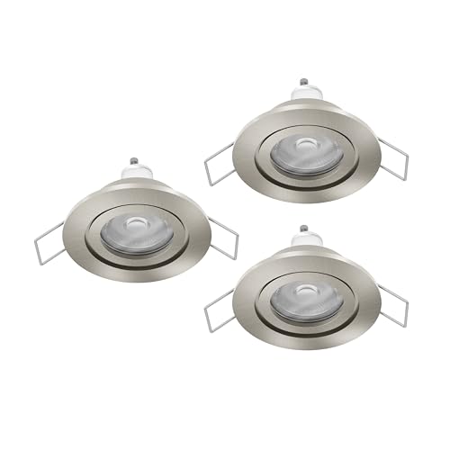 Eglo Set of 3 LED recessed spotlights Barranco, Ceiling spot for Bathroom, Light fixtures Made of Silver Plastic, Bathroom lamp Neutral White, Including GU10 Bulbs, IP44