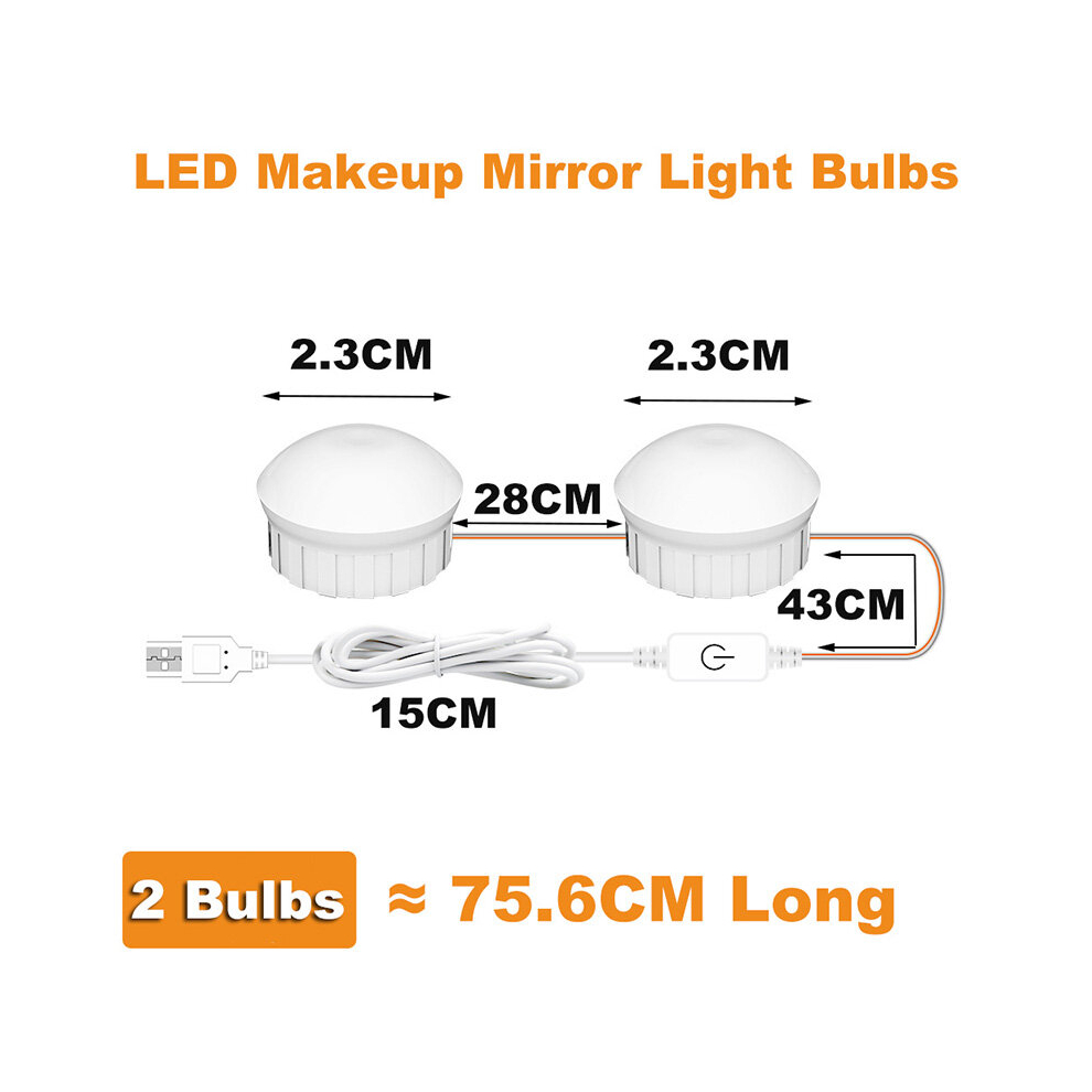(2 bulbs) LED Make up Mirror Light Bulbs USB Hollywood Vanity Makeup Mirror Lights Bathroom Dressing Table Lighting Dimmable LED Wall Lamp