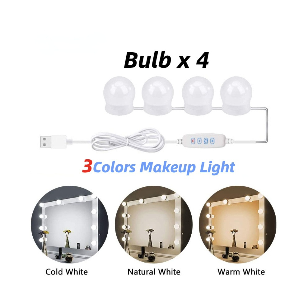 (3 Colors 4 Bulbs, Dimmable) LED Light Makeup Mirror Bulbs Vanity Lights USB 12V Bathroom Dressing Table Lighting Dimmable LED Vanity Light For Mirror