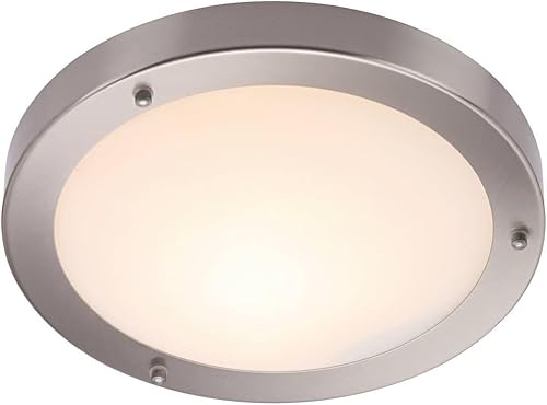 Portico IP44 Rated Flush Round Satin Nickel 300mm Disc Dimmable Bathroom Ceiling Light Fitting with Frosted Glass Shade Zone 2