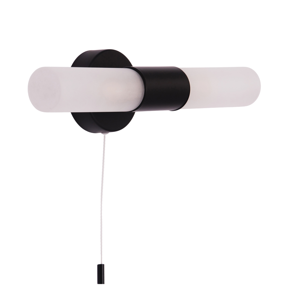 Loops Bathroom Wall Light Fitting - Matt black & White Glass Twin Lamp