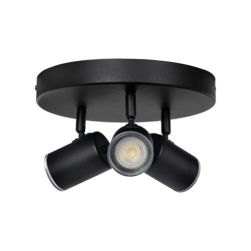 Eglo Spotlight bar Consuma 1, Bathroom Light Fitting with 3 Flexible Spots, Round Ceiling lamp Kitchen Made of Black Steel, GU10 Socket, IP44
