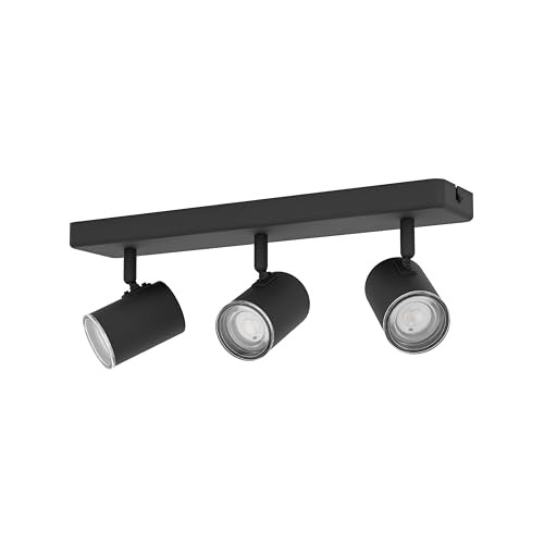 Eglo Spotlight bar Consuma 1, Bathroom Light Fitting with 3 Flexible Spots, Ceiling lamp Kitchen Made of Black Steel, GU10 Socket, IP44