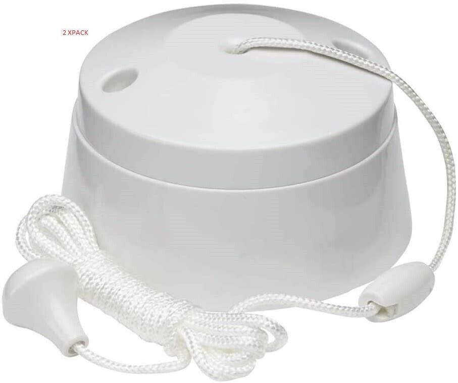 2xpack 2Way Pull Cord Switch Bathroom Ceiling Light Fitting 6 Amp White Plastic