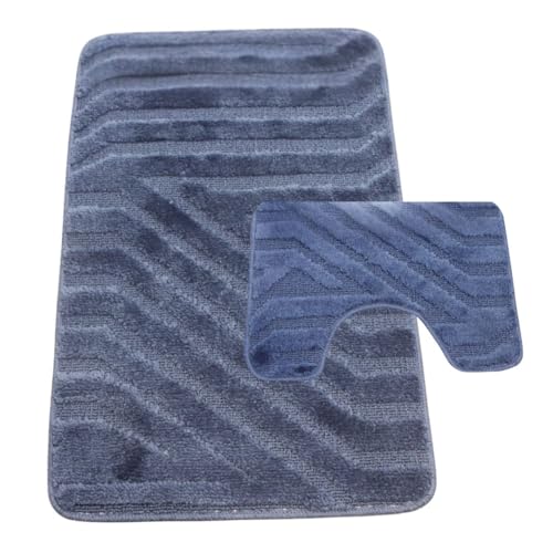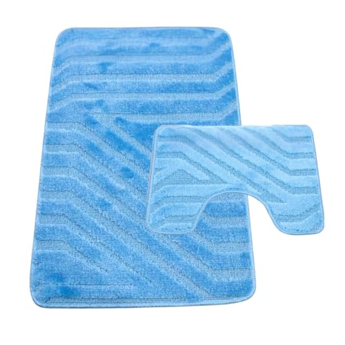 Westward Ho! Lorenzo 2 Piece Bathroom Mat Set – 100% Polypropylene Soft & Durable Bath Rugs with U-Shaped Mat – Denim Blue