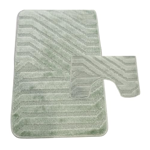 Westward Ho! Lorenzo 2 Piece Bathroom Mat Set – 100% Polypropylene Soft & Durable Bath Rugs with U-Shaped Mat – Sage Green