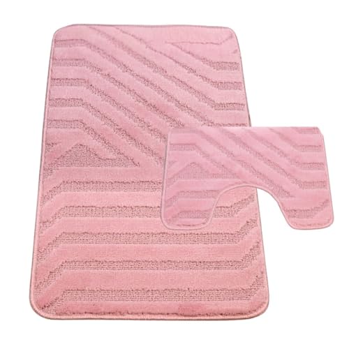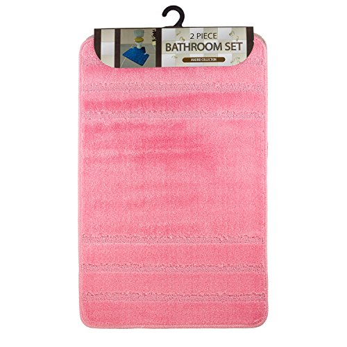 Westward Ho! Lorenzo 2 Piece Bathroom Mat Set – 100% Polypropylene Soft & Durable Bath Rugs with U-Shaped Mat – Pink