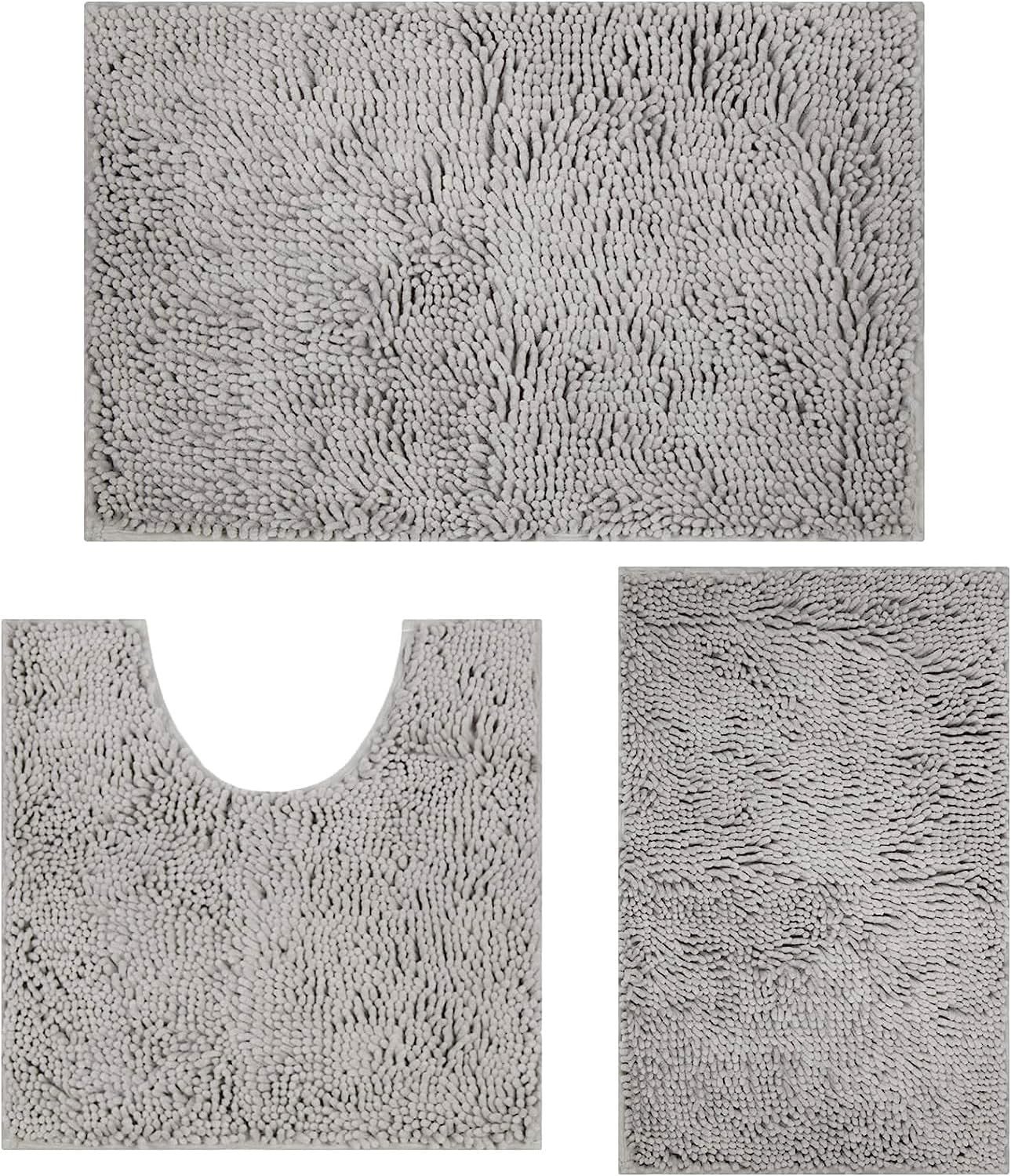 COMPOLICY Bathroom Mat Set of 3 (Light Grey, 3Pcs-50X80-40X60-50X50Cm)