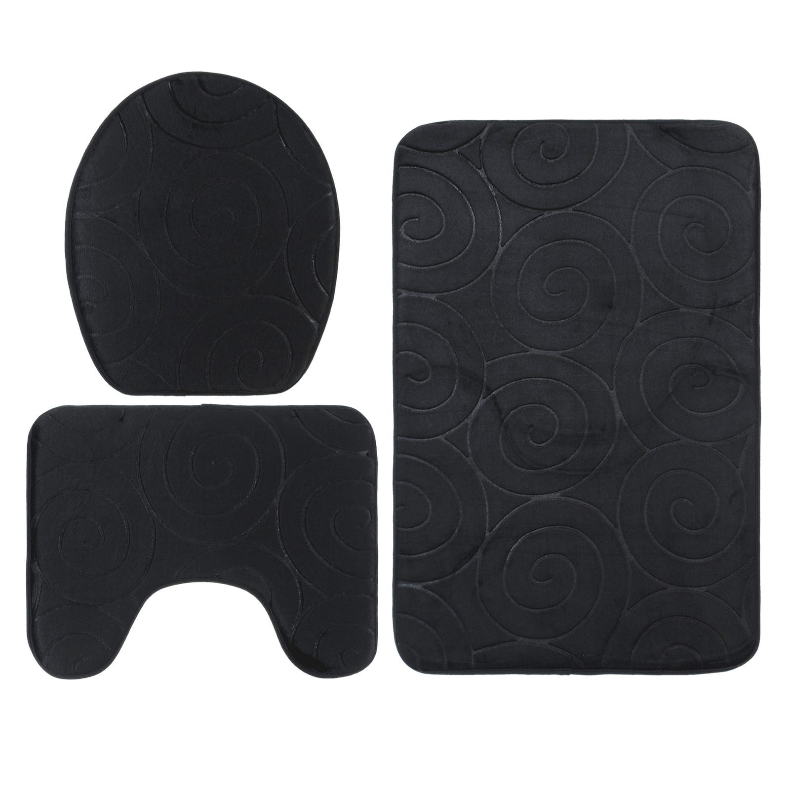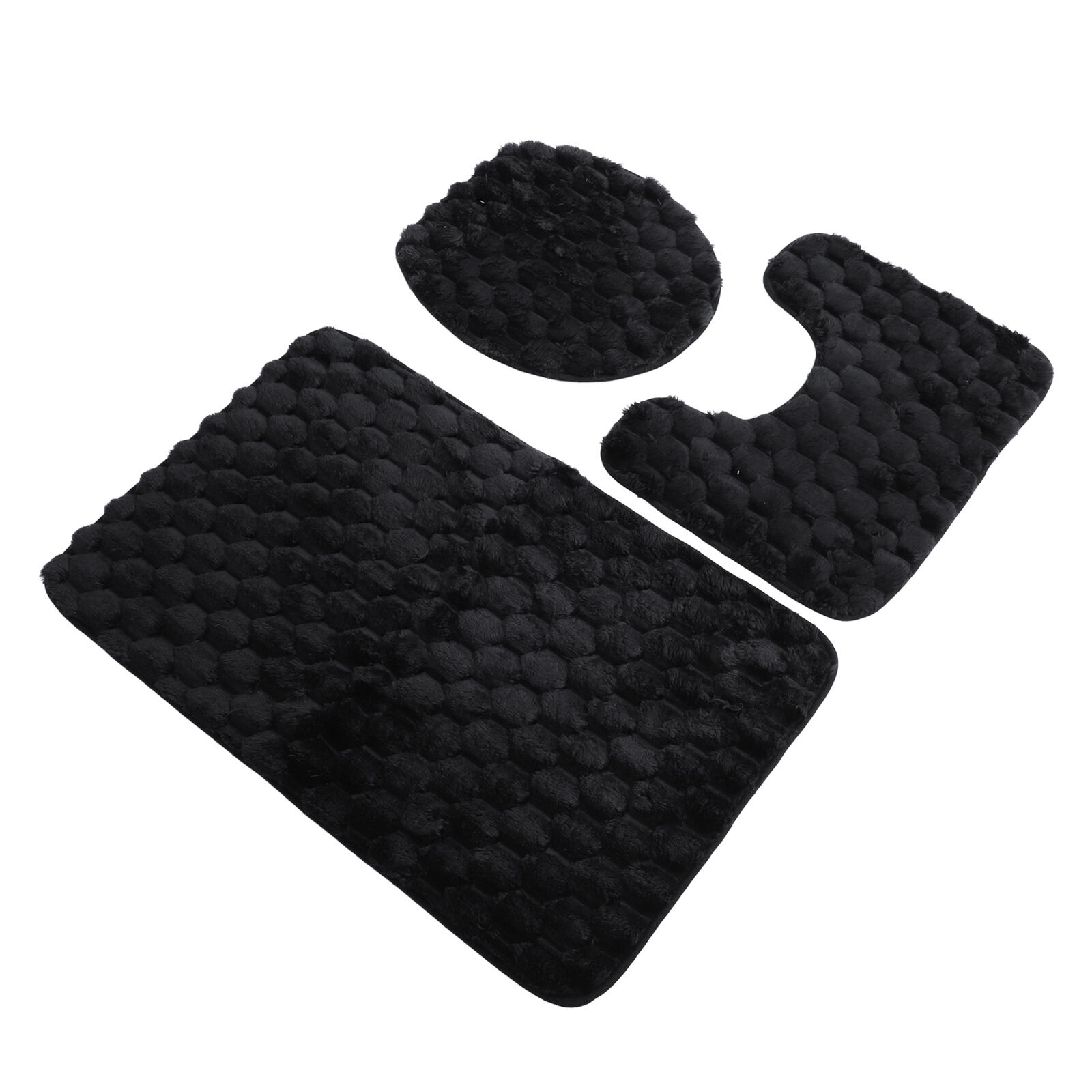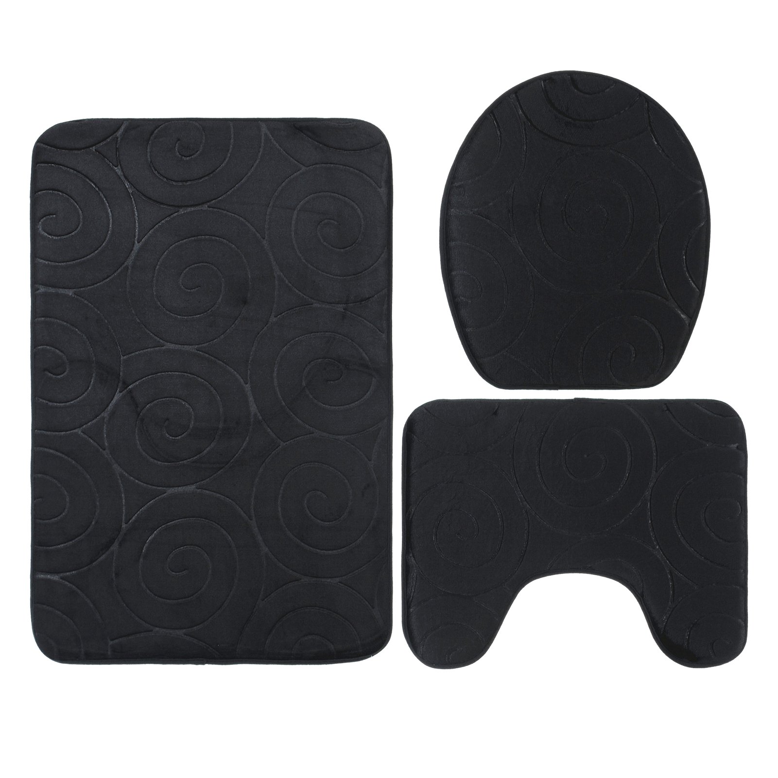 Black 3 PCS Bathroom Mat Set Stone Embossed Toilet Lid Cover Floor Mats Bat OU