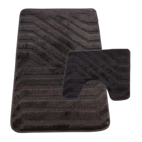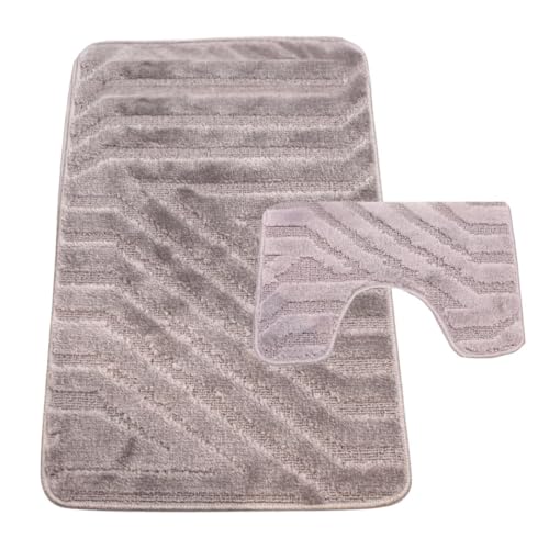 Westward Ho! Lorenzo 2 Piece Bathroom Mat Set – 100% Polypropylene Soft & Durable Bath Rugs with U-Shaped Mat – Grey