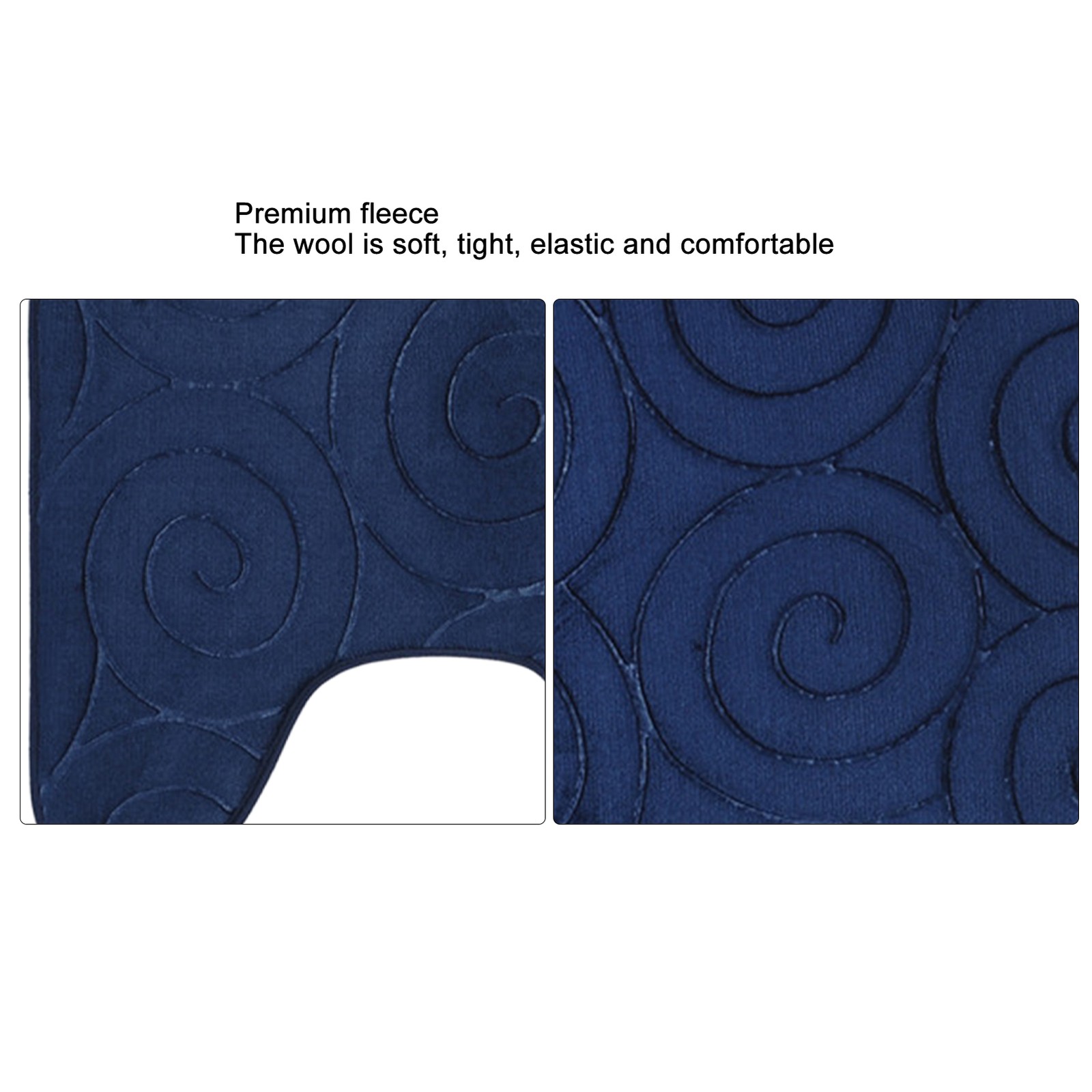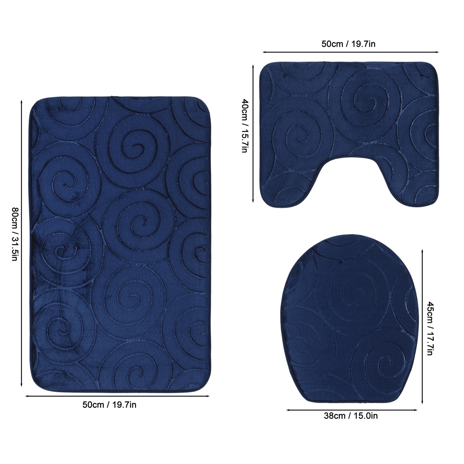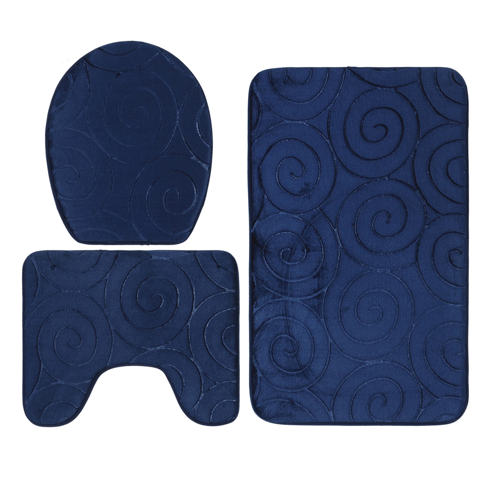 (Navy Blue)3 PCS Bathroom Mat Set Stone Embossed Toilet Lid Cover Floor Mats
