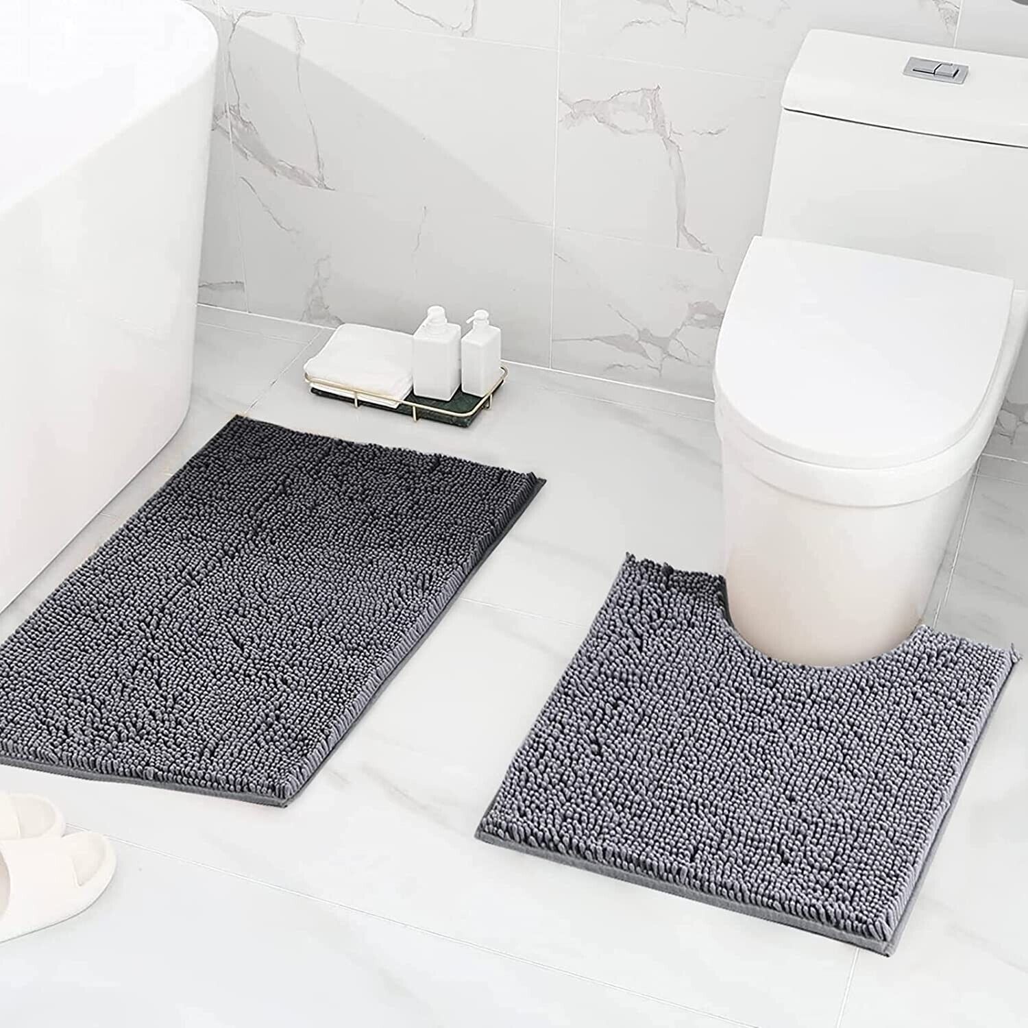 Bathroom Mat Set Non Slip 2 Piece Chenille Toilet Pedestal Rug Memory Loop