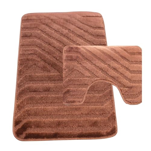 Westward Ho! Lorenzo 2 Piece Bathroom Mat Set – 100% Polypropylene Soft & Durable Bath Rugs with U-Shaped Mat – Brown
