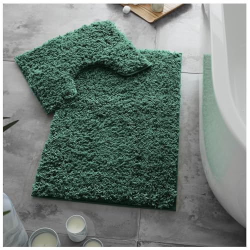 GC GAVENO CAVAILIA Bath Mat Non Slip - 2 Piece Bathroom Mat Set - Super Absorbent Toilet Rug - Quick Drying Bath Mat - Machine Washable - Green (50X80, 50X40)