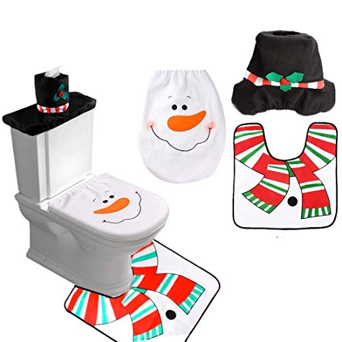 SHATCHI Christmas Snowman Toilet Seat Cover and Mat Bathroom Set Xmas Home Decor Party Accessories 3pcs, White