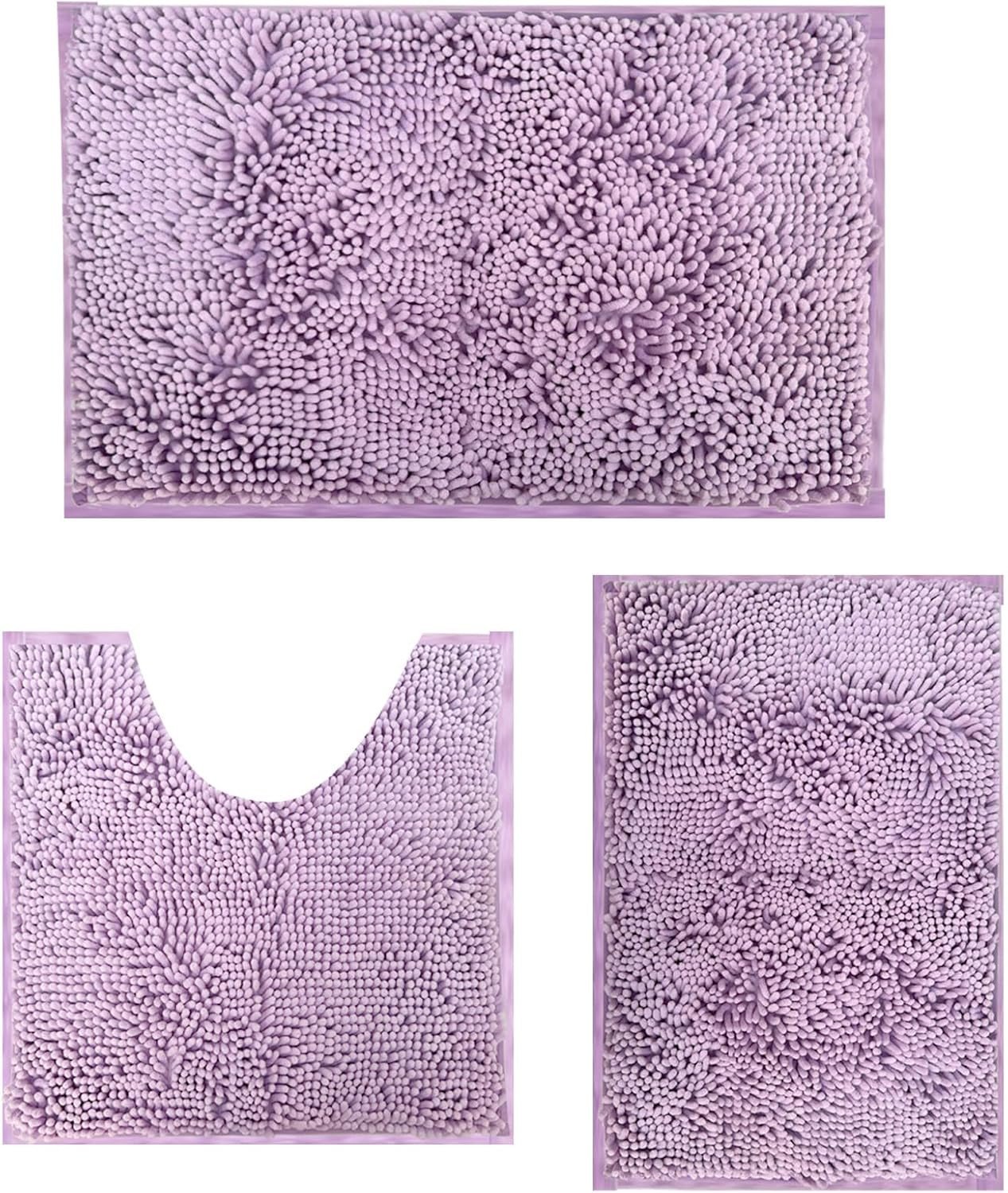 COMPOLICY PLACEROOM Bathroom Mat Set of 3, Bath and Toilet Mat Set,Ultra Soft Chenille Bath Mat Non Slip,Bath Mat Sets 3 Piece Washable,Super-Absorbent Bath(Light Purple bath set)