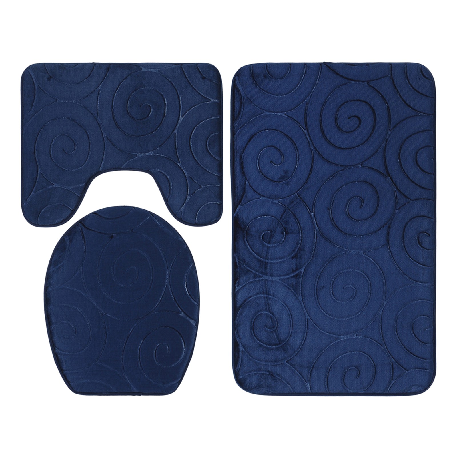Carpets Navy Blue 3 PCS Bathroom Mat Set Stone Embossed Toilet Lid Cover Floor