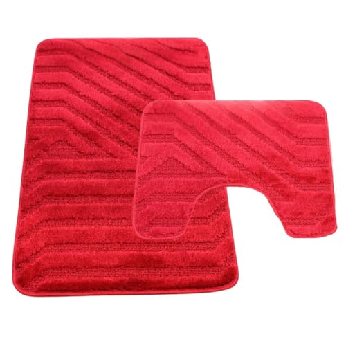 Westward Ho! Lorenzo 2 Piece Bathroom Mat Set – 100% Polypropylene Soft & Durable Bath Rugs with U-Shaped Mat – Burgundy