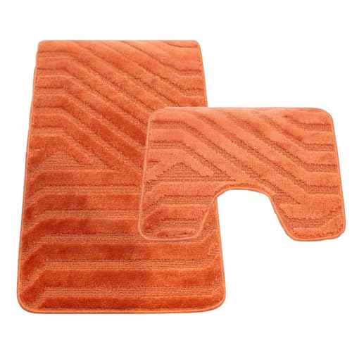 Westward Ho! Lorenzo 2 Piece Bathroom Mat Set – 100% Polypropylene Soft & Durable Bath Rugs with U-Shaped Mat – Brick