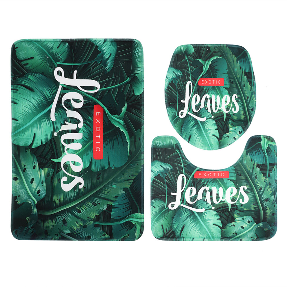 Quick Dry Absorbent Rug For Non-Slip Bathroom Mat, Tropical Leaf Bath Mat With Memory Foam Comfort, Green Leaf Pattern Bathroom Floor Mats (3Pcs/Set)