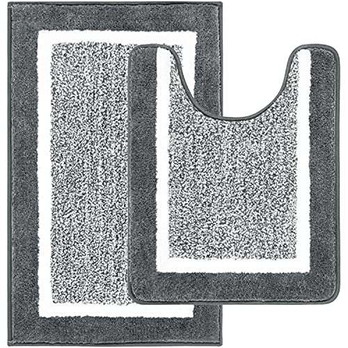 Pauwer 2 Pieces Bath Rug Set Bathroom Mats Set & U-shaped Toilet Rug Non Slip Shower Shaggy Floor Mats Machine Washable Bath Rug for Bathroom(50x80cm+50X60cm, Dark Grey)