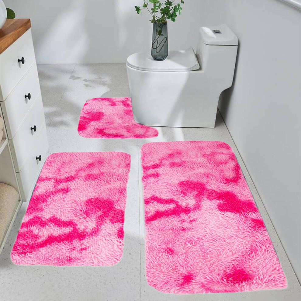 3PC Shower Rugs for Bathroom Set Bathroom Floor Mats Bath Rug Sets Modern Bathroom Rug Bath Mats Set Clearance Bathroom Rugs (Pink)