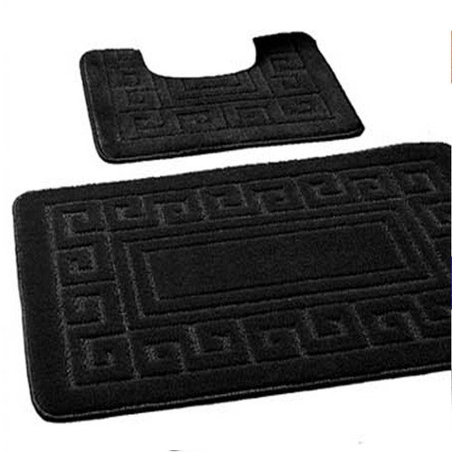 Greek Bath Mat 2 Pcs Set Non-Slip Bath Rug Toilet Mat Washable Bathroom Mats Rugs Absorbent Soft Rug for Bathtub Bathroom Includes 1 Bath Mat (50 X 80cm) And 1 Pedestal Mat (50 X 40cm) (BLACK)
