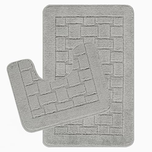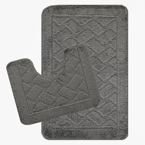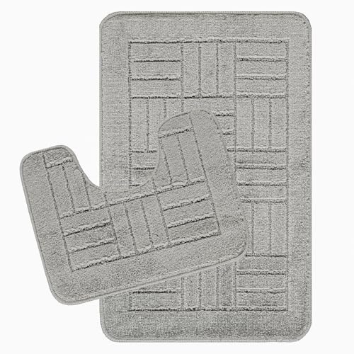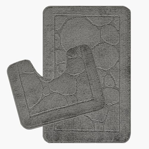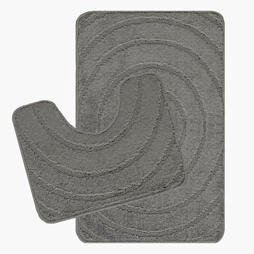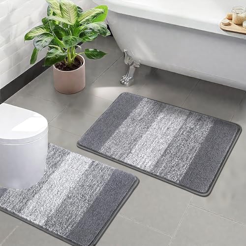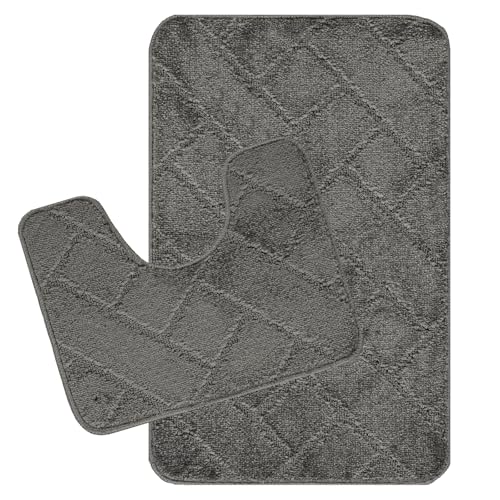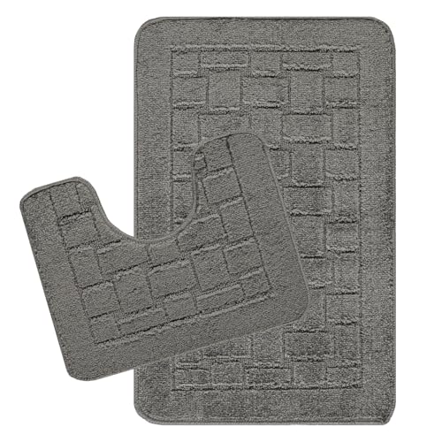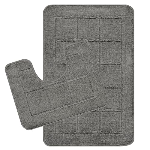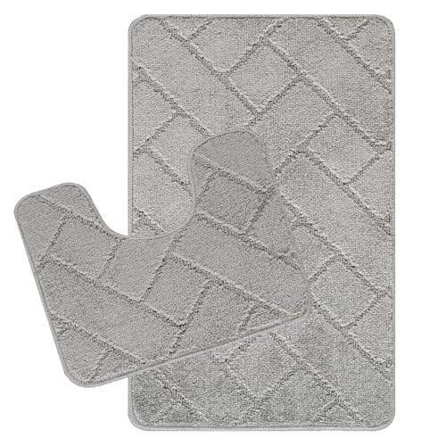 Enyhom Soft Bathroom Mat Sets 2 Piece Water Absorbent Bath Mats and Toilet Mat Non Slip Machine Washable Bath and Pedestal Mat Sets, Grey